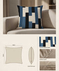 Mavi Siyah Geometrik Blok Desenli Kırlent Kılıfı